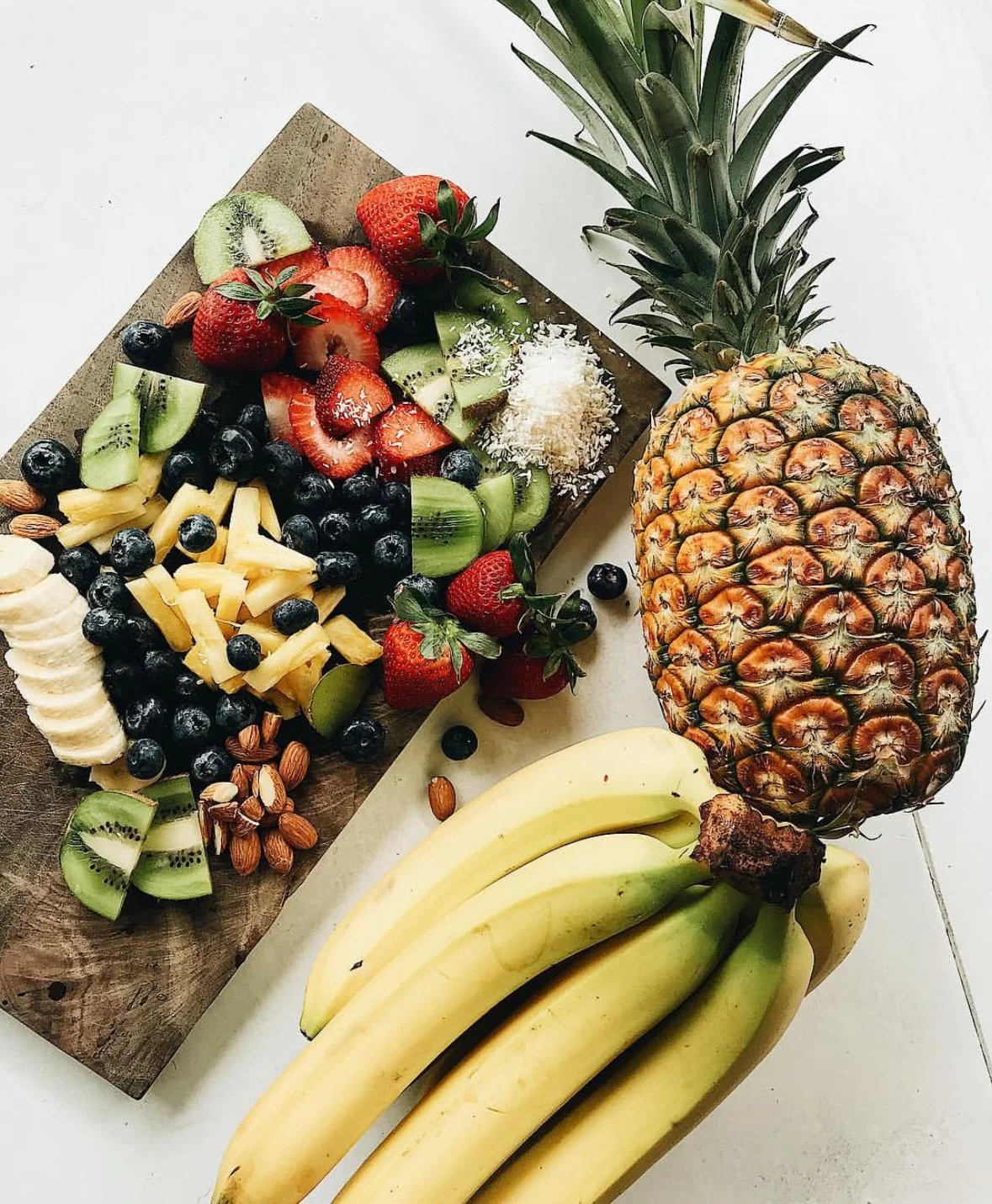 fresh sliced bananas, strawberries, & blueberries